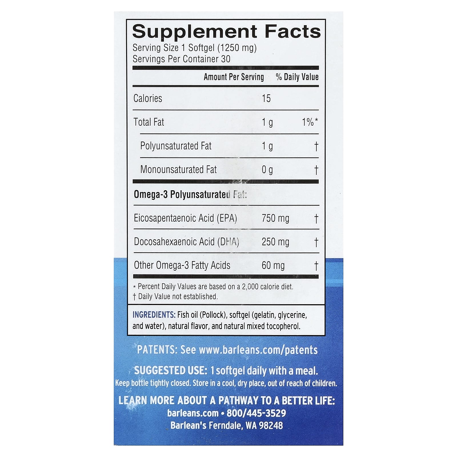 Frescor e Pureza IDEAL: Derivado de peixes capturados nas águas cristalinas e geladas do Alasca, puro e potente, o Omega 3 de Barlean’s Ideal recebeu a cobiçada Classificação 5 estrelas da IFOS, um programa de certificação terceirizado premiado.
