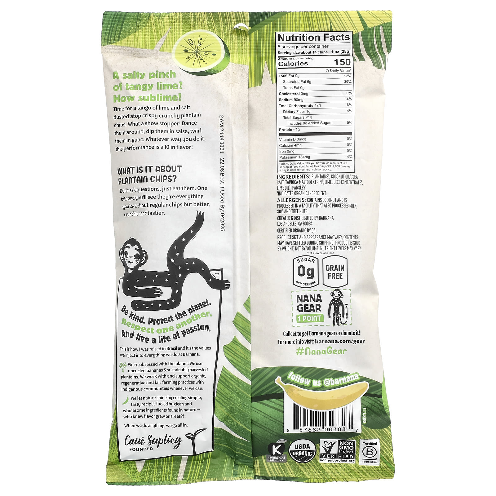 Barnana Batatas Fritas Orgânicas Limão Acapulco 140 g (5 oz) – Barnana Alimentos Petiscos e lanches Snacks crocantes Frutas e Legumes Secos Bananas.