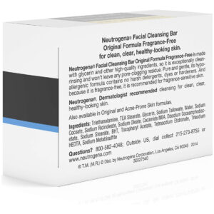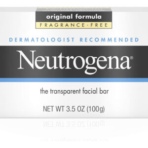 Barra de limpeza facial Neutrogena Original sem perfume com glicerina, sabonete em barra de lavagem facial suave e transparente, sem detergentes agressivos, corantes e endurecedores, barra de limpeza facial Neutrogena de 3,5 onças a 3,5 onças em fórmula original sem fragrância para limpeza facial diária suave de uma marca de cuidados com a pele recomendada por dermatologistas — Esta barra de limpeza pura foi projetada para todos os tipos de pele e ensaboam até remover o excesso oleosa e limpa suavemente a pele — Com a fórmula original da Neutrogena, a barra de sabonete facial é rica em glicerina para atrair umidade e não contém substâncias agressivas detergentes, corantes ou endurecedores que podem irritar a pele – Nossa barra de limpeza facial é excepcionalmente limpa, sem deixar nenhum resíduo que obstrua os poros, para uma pele clara e com aparência mais saudável – A fórmula pura e suave desta barra de sabonete facial é livre de fragrâncias, hipoalergênica e adequada para uso diário