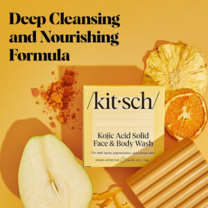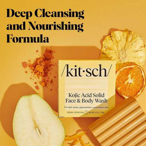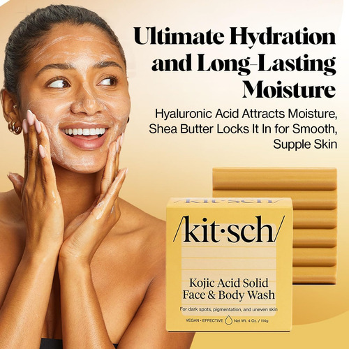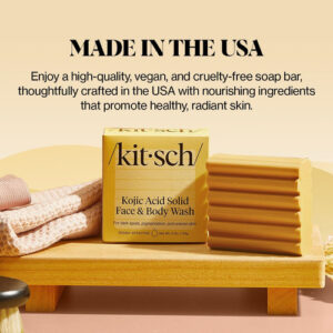 Sabonete facial Kitsch — FÓRMULA NUTRITIVA E DE LIMPEZA PROFUNDA Experimente uma limpeza revitalizante da cabeça aos pés com uma barra de sabonete infundida com açafrão, ácido hialurônico e manteiga de karité, projetada para deixar sua pele revigorada, macia e hidratada. – INGREDIENTES HIDRATANTES E QUE BLOQUEIAM A UMIDADE O ácido hialurônico ajuda a atrair e reter a umidade, enquanto a manteiga de karité rica em vitaminas nutre sua pele, promovendo uma aparência suave, flexível e profundamente hidratada. – ECOLÓGICO E SUSTENTÁVEL Reduza o desperdício de plástico com esta barra concentrada, contendo o ativo ingredientes de um sabonete líquido líquido de 16 onças, ajudando você a fazer uma escolha ambientalmente consciente em sua rotina diária. – Seguro e suave para o uso diário Livre de parabenos, ftalatos, silicones e sulfatos, este bar vegano e livre de crueldade é feito com ingredientes que adoram a pele, adequados para uso diário no rosto e no corpo. – Feito nos EUA Desfrute de uma barra de sabonete de alta qualidade, vegana e livre de crueldade, cuidadosamente feito nos EUA com ingredientes nutritivos que ajudam a manter a pele com aparência saudável.
