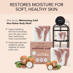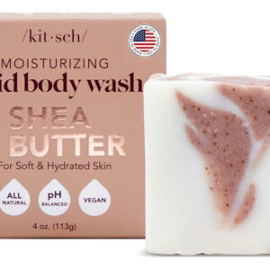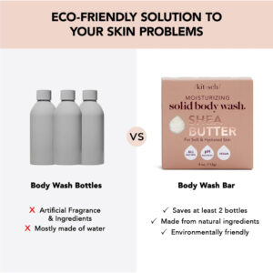 Não há mais pele seca. Apresentamos os sabonetes corporais Kitsch Shea Butter Solid – a solução definitiva para uma pele nutrida e revitalizada. Esta fórmula única e natural de sabonete em barra foi especialmente desenvolvida para limpar e hidratar suavemente a pele, sem retirar seus óleos naturais. Com pequenos esfoliantes de origem vegetal, este sabonete em barra natural ajuda a revelar uma pele mais macia e suave que você vai adorar exibir! O que faz com que a barra de sabonete natural Kitsch Shea Butter Solid se destaque é seu compromisso de ser livre de substâncias químicas nocivas. Entendemos a importância de usar produtos seguros para a pele e o meio ambiente. É por isso que nosso sabonete líquido é livre de parabenos, ftalatos, silicones, sulfatos e fragrâncias artificiais. Nosso sabonete líquido não é apenas seguro para sua pele, mas também é ótimo para o planeta. Com sua forma sólida, reduz o desperdício de plástico descartável e economiza dois frascos de xampu ou condicionador líquido. É uma pequena mudança que pode fazer uma grande diferença! O sabonete líquido sólido com manteiga de karité Kitsch é o complemento perfeito para sua rotina diária de banho. Se você deseja limpar, hidratar ou esfoliar a pele, nosso sabonete líquido faz tudo. E com sua fórmula hidratante, você nem precisará usar loção corporal após o banho! Feito nos EUA, você pode confiar que o sabonete líquido sólido com manteiga de karité Kitsch é da mais alta qualidade. É hora de atualizar sua rotina de banho com um produto que seja bom para você e para o planeta. Experimente o sabonete líquido sólido com manteiga de karité Kitsch hoje e sinta a diferença! – LIMPE E HIDRATE SUA PELE: Apresentamos o sabonete líquido sólido com manteiga de karité kitsch! Esta barra corporal apresenta uma fórmula superhidratante que garante que sua pele permaneça hidratada após o banho, para que você não precise de loção corporal depois. – REVELE UMA PELE MAIS MACIA: este sabonete em barra de sabonete líquido e esfoliante em barra tem pequenos esfoliantes derivados de plantas, deixando você com uma pele mais macia após cada uso. – LIVRE DE PRODUTOS QUÍMICOS NOCIVOS: O sabonete em barra feminino Kitsch Shea Butter é livre de parabenos, ftalatos, silicones, sulfatos e fragrâncias artificiais, tornando-o uma opção segura para sua pele. – ECOLOGICAMENTE CORRETO: Ao usar este sabonete corporal sem desperdício, você pode reduzir o uso único plástico, pois economiza dois frascos de xampu ou condicionador líquido. – SABONETES CORPORAIS LIVRES DE CRUELDADE: somos certificados pela Leaping Bunny! O logotipo Leaping Bunny é o único símbolo reconhecido internacionalmente que garante aos consumidores que nenhum novo teste em animais foi usado para desenvolver qualquer produto que o exiba.