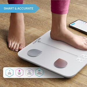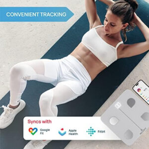 EXPERIÊNCIA DELICIOSA: Projetado aqui no sul da Califórnia para complementar a decoração de qualquer ambiente e ainda assim ser funcionalmente eficiente. O grande display LED luminoso de 3,6”, liga automaticamente quando você pisa e sua composição corporal no smartphone com um simples toque.