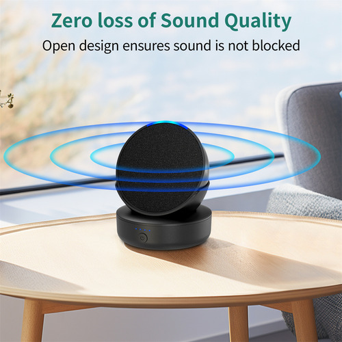 2. O tamanho da base da bateria se encaixa perfeitamente no Echo Pop. O alto-falante é fixado com fivelas para facilitar a instalação e as almofadas inferiores são projetadas para serem à prova de choque. 3.