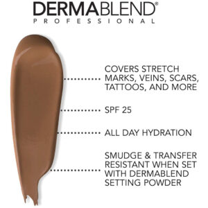 Base de maquiagem Dermablend para pernas e corpo com SPF 25, 70 W de ouro profundo, 3,4 fl oz (pacote com 1) — Base de maquiagem corporal — Maquiagem corporal com SPF 25 — Maquiagem de base de cobertura total — Hidratação o dia todo — Resistente a manchas e transferências quando usada com Dermablend Loose Setting Powder