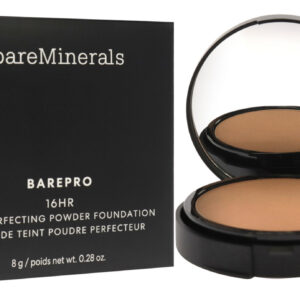 Barepro 16HR Skin Perfecting Powder Foundation é uma base vegana em pó prensado sem talco que melhora visivelmente o tom e a textura da pele ao longo do tempo. Esta fórmula resistente ao suor, umidade e transferência oferece 16 horas de cobertura total respirável com um acabamento fosco natural. 94 por cento disseram que reduz imediatamente a aparência do óleo. É confortável durante todo o dia. Ajuda a clarear visivelmente e suavizar a textura da pele. A fórmula que não seca e não endurece pode ser usada úmida ou seca, dependendo do tipo de pele ou da preferência de aplicação.