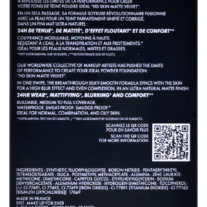 Uma base em pó leve, de cobertura média a total, com uma fórmula limpa que desfoca a aparência das imperfeições e matifica por até 24 horas para um acabamento natural e real da pele.