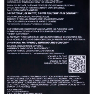 Uma base em pó leve, de cobertura média a total, com uma fórmula limpa que desfoca a aparência das imperfeições e matifica por até 24 horas para um acabamento natural e real da pele.