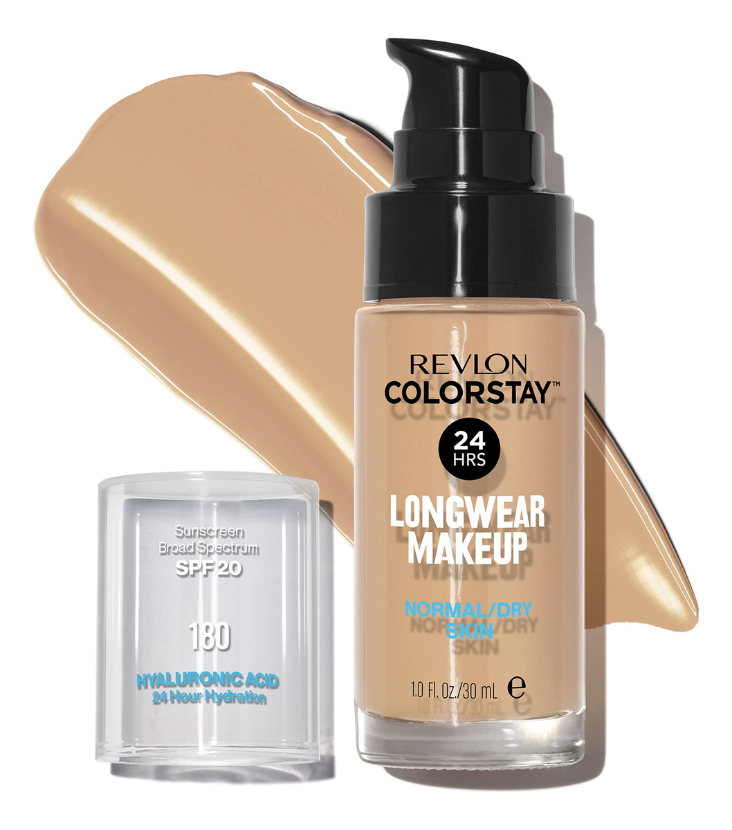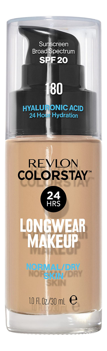 Base líquida Revlon, maquiagem facial ColorStay para pele normal e seca, SPF 20, longa duração, cobertura média total com acabamento natural, sem óleo, 180 g, bege arenoso, 1 onça — LONGA DURAÇÃO: base sem óleo e sem fragrância com FPS 20 de amplo espectro cria uma aparência perfeita por até 24 horas; sensação confortável e leve – Cuidados com a pele: o ácido hialurônico aumenta a umidade da pele em mais de 120% – ACABAMENTO MACIO E NATURAL: 24 horas de hidratação para um brilho saudável — À prova de movimentos: resistente à transferência, à prova d'água e fácil de usar; resiste ao calor, ao suor e à umidade — PARA TODAS AS PELES: 24 tons diversos