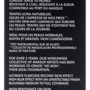 Uma base de longa duração de 24 horas de cobertura média a total que desfoca as imperfeições e oferece um acabamento fosco natural que se parece com a pele. Pode ser ajustado até o nível de cobertura desejado e pode ser aplicado facilmente sem parecer macio