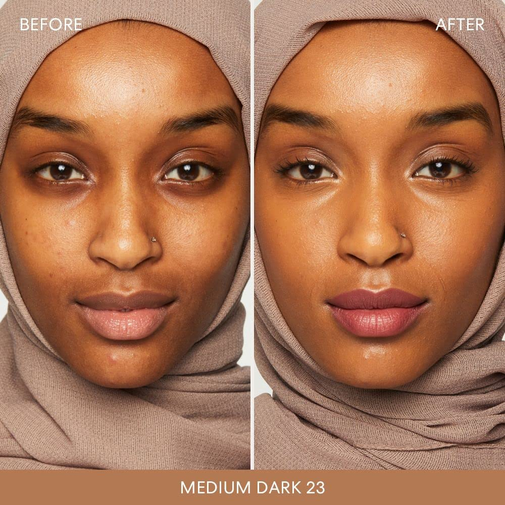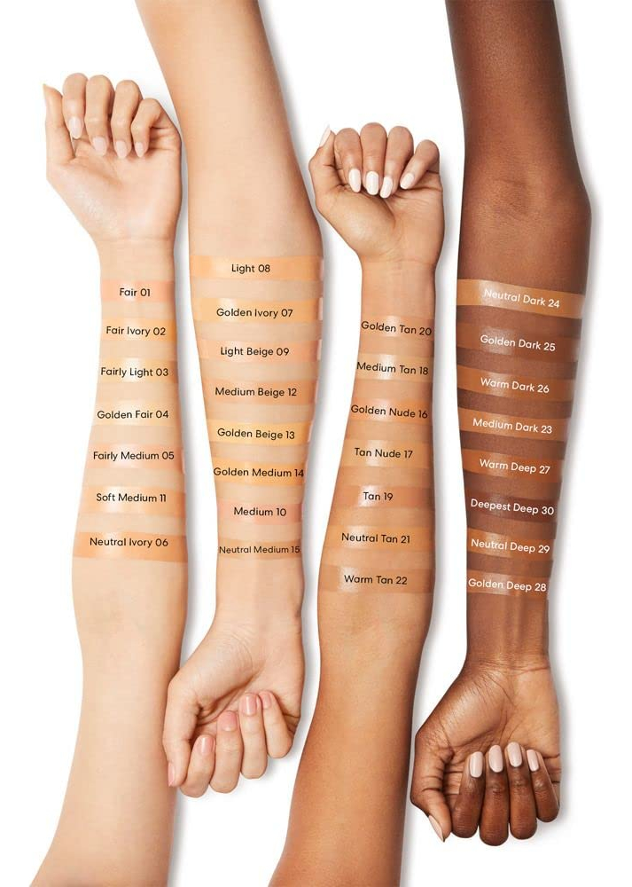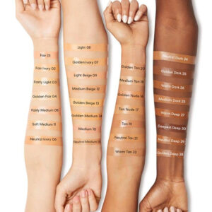 Base mineral líquida original de amplo espectro SPF 20 – Melhora visivelmente a textura da pele – Reduz a aparência dos poros – Minimiza a aparência de vermelhidão – Oferece cobertura média com um acabamento luminoso – Combina facilmente com uma sensação leve