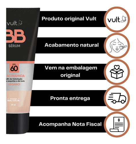 Nenhum produto Vult é testado em animais, ou seja, este item possui selo Cruelty Free. Produto Vegano.
