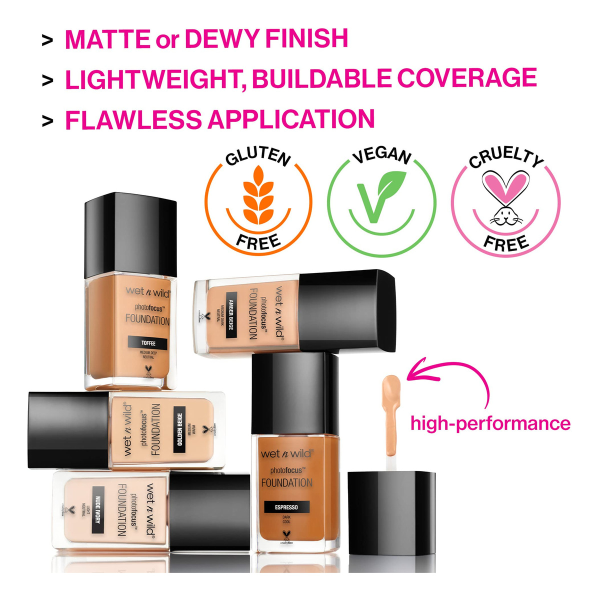Wet n wild Photo Focus Dewy Liquid Foundation Makeup, Classic Bege — SUA PELE, SÓ QUE MELHOR: nossa base de alto desempenho que aperfeiçoa a pele é formulada com um complexo fosco difusor de luz para ajudar a evitar manchas brancas nas fotos e proporcionar uma tez radiante. – Base aprovada para selfies: cor que combina com todos os tons com um acabamento fosco de segunda pele, esta base oferece cobertura edificável para uma tez impecável em qualquer tipo de luz. — MELHOR FACE FORWARD: de bronzeador e blush a primer, iluminador, pó de acabamento natural e corretivo, temos tudo o que você precisa e tem fotos prontas para sua próxima grande novidade. Você encontrou seu verdadeiro par de maquiagem! – SEMPRE LIVRE DE CRUELDADE: Somos 100% livres de crueldade, e sempre fomos! Também oferecemos maquiagem e ferramentas veganas, como base, esmaltes, paletas de contorno, batom, pincéis de maquiagem e muito mais. – STAY WILD: Somos o destino de beleza confiável para amantes da beleza de todas as idades, etnias, cores de pele e status econômico. Não importa quem ou onde você esteja na vida, temos um produto para você!