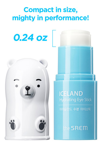 Bálsamo hidratante para olhos SAEM Iceland de 0,24 onças — Bálsamo refrescante para olheiras e tratamento de inchaço sob os olhos — Reduza as rugas e a hidratação — Minimize os olhos escuros e inchados — Perfume aquático — MAXIMIZE A EFICÁCIA COM QUANTIDADE MÍNIMA: nosso protetor hidratante para os olhos de 0,24 onças, embora compacto, oferece um poderoso efeito hidratante, refrescante e refrescante, superando os outros de sua classe. Confie em sua eficiência para rejuvenescer seus olhos, fazendo com que cada aplicação valha a pena. – PARA UMA ÁREA EMBAIXO DOS OLHOS SUAVE E TONIFICADA: O bálsamo embaixo dos olhos da Saem para olheiras e inchaço cobre bem as curvas ao redor dos olhos, reduzindo rugas e linhas finas. Este colírio para olheiras melhora a elasticidade sob a área dos olhos para tonificá-la e aliviar a pele inchada e flácida. – BÁLSAMO SUAVIZANTE PARA OS OLHOS COM ÁGUA GELEIRA DA ISLÂNDIA: O bastão hidratante Saem Iceland é enriquecido com a bênção de geleiras de milhões de anos. Nossa máscara embaixo dos olhos contém musgo da Islândia, plantas da Islândia, xilitol, niacinamida, adenosina e outros ingredientes marinhos ativos. – TEXTURA SUPERLEVE E SEDOSA: O bálsamo reparador de rugas sob os olhos Saem tem uma textura superleve e refrescante, facilitando a aplicação. O formato stick permite uma fácil aplicação sem deixar qualquer viscosidade. Este bálsamo para os olhos proporciona frescor, deixando a pele cansada revigorada. – BASTÃO DE ROLO FÁCIL DE USAR: O bálsamo para embaixo dos olhos Saem vem em uma forma exclusiva de bastão, facilitando a aplicação. Use após a essência como um bálsamo para os olhos. Você pode usá-lo por cima da maquiagem sempre que precisar de hidratação e frescor extras. – PURO E LIMPO: Nosso bálsamo define um novo padrão: sem sulfato, sem óleo essencial, sem parabenos, sem óleo mineral e sem alérgenos. Eleve sua rotina de cuidados com a pele com a tranquilidade que vem de um cuidado suave e nutritivo. Seus olhos não merecem nada além do melhor.