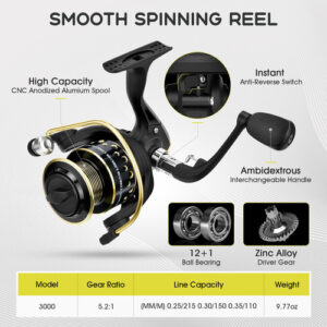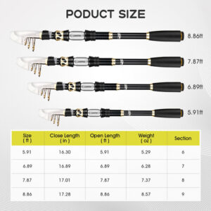 Conjunto de vara telescópica combinada de vara de pesca e molinete com linha de pesca, kit de iscas de pesca e bolsa de transporte para água doce marinha, vara de pesca premium de 6/7/8/9 pés de comprimento de 4 postes disponível em bobina extra lisa, vários acessórios portáteis para transportar Ótimo serviço de manutenção e pós-venda – Vara de pesca premium: esta vara de pescar é bem feita de fibra de carbono 24T com assento de bobina com capuz de aço inoxidável, que é durável e resistente à corrosão. O anel guia de linha de aço inoxidável construído com anel de cerâmica melhora a dissipação de calor. A alça de EVA é macia e confortável de segurar. – Bobina extra lisa: carretel de alumínio requintado com duas cores, botão de madeira, alça de metal dobrável intercambiável à direita/esquerda. Com um desempenho extremamente suave, é ótimo para peixes de caça grandes. Potente relação de transmissão de 5,2:1, capacidade de linha: (mm/m) 0,25/215 0,30/150 0,35/110. – Vários acessórios: este kit de varas de pesca inclui: 1* vara de pesca telescópica+1 bobina de pesca+ 1* bolsa transportadora de EVA+ 1* linha de pesca de 120 m+1 equipamento de iscas e acessórios de pesca. – Portátil para transportar: a combinação de vara de pesca giratória e molinete com bolsa transportadora de EVA é leve e fácil de levar. Ele cabe facilmente em sua mochila, baú ou barco. Desfrute de uma maravilhosa viagem de pesca a qualquer momento! – Serviço de manutenção e pós-venda: após a pesca, limpe suavemente a vara com uma toalha torcida com água e depois limpe as manchas em cada seção. Se você encontrar algum problema, entre em contato conosco e nós os resolveremos o mais rápido possível.