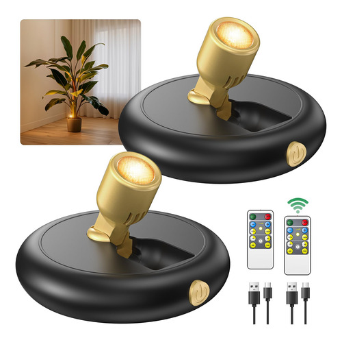 * 80 lúmens, refletor LED operado por bateria, material ABS, consumo de energia em espera de 0,7 mA, tempo de espera de cerca de 6 meses. * Dez níveis de escurecimento de 10% a 100% pressionando longamente o botão na luz * O alcance do controle remoto é de aproximadamente 33 pés através das paredes e 66 pés sem paredes * Fácil de montar com fita magnética e parafusos. * A lâmpada dura 140h com 10% de brilho, 95h com 50% de brilho e 40h com 100% de brilho. * A luz Puck com controle remoto pode ser usada em ambientes internos, como fotos, estátua, manjedoura, retratos, fotos, manto de lareira, obra de arte em metal, escultura, curiosidade, modelo de navio, dardos, pintura de parede, vitrine de cristal, Halloween, árvore de Natal, decoração de enfeites de Natal, luzes de leitura, banheiro, corredor, cozinha, armário, estante, armário, estante, porão, gaiola, despensa, guarda-roupa, estante, joias display, prateleira decorativa, quarto, despensa, sala de jogos, garagem, entrada, teto, parede ou destaque plantas, luzes de mesa, luzes de disco, luzes fotográficas, criam iluminação ambiente e perfeito para destacar obras de arte, luz decorativa, iluminação de realce e muito mais. Lista de embalagem – 2 refletores LED operados por bateria – 2 controles remotos – Cabo de carregamento de 212" – 2 adesivos e parafusos magnéticos – 1 manual do usuário – EXCELENTE VIDA ÚTIL E BRILHO DA BATERIA: Não precisa se preocupar com o rápido esgotamento de energia. A bateria embutida recarregável de 5000mAh atualizada e equipada permite que você mantenha a luz acesa por até 40 horas com o brilho mais alto, 140 horas com o brilho mais baixo e 4-5 horas para carregar totalmente. O tempo de espera é de cerca de 6 meses. O brilho máximo da luz ascendente é de 80 lúmens, com brilho quente de 3000K. Uma iluminação brilhante e suave proporciona uma atmosfera calorosa e agradável. – MONTAGEM MAGNÉTICA FORTE: Existem ímãs fortes na parte inferior do holofote e também incluem um pedaço de ferro com papel adesivo – pode ser montado magneticamente em paredes, tetos ou outra superfície limpa e lisa. Você também pode montar os holofotes em superfícies irregulares com o parafuso que fornecemos. – LUZ FOCAL PARA PLANTAS OPERADAS POR BATERIA COM CONTROLE REMOTO: você pode sentar no sofá e usar o controle remoto sem esforço para controlar luzes distantes a até 66 pés de distância. Pressione o botão “+” ou “-” ou pressione o botão "50%" ou "100%" diretamente para ajustar o brilho da luz de foco conforme desejar. Você pode configurar o cronômetro para desligar automaticamente em 15, 30, 60 ou 120 minutos. – ILUMINAÇÃO MULTIDIRECIONAL: a cabeça de luz giratória pode girar facilmente 350 e girar para cima e para baixo em 90, atendendo perfeitamente a todas as suas demandas de direção de iluminação. – Vários cenários de uso: o tamanho compacto permite que você coloque as luzes do disco sem fio em qualquer lugar, destacando plantas, estantes, guarda-roupas, corredor, galeria, armário, prateleira, piso, pinturas, fotos, caveiras, obras de arte, retratos, estátuas, dardos, modelos, árvores, decorações de Natal e muito mais! Um complemento perfeito para sua linda casa.