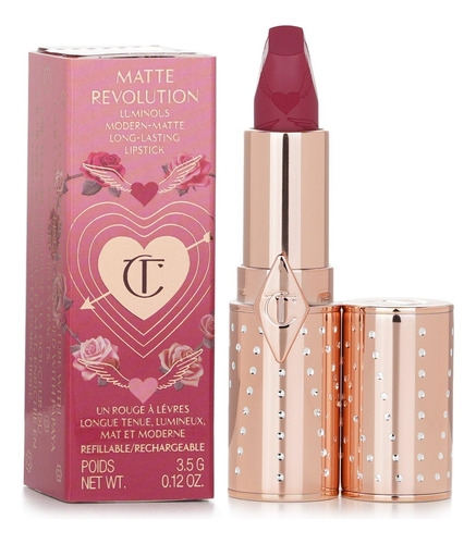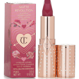 O batom Matte Revolution Lipstick de Charlotte Tilbury é um batom fosco que apresenta uma fórmula duradoura, montável e hidratante. – O batom apresenta pigmentos de brilho 3D que ajudam os lábios a parecerem mais largos e cheios. – A fórmula fosca é enriquecida com o ingrediente secreto e extrato de orquídea de Charlotte para proteger e suavizar os lábios e obter um acabamento em caxemira. – A ponta exclusiva em ângulo quadrado imita o formato de um pincel labial para uma aplicação precisa. – Este produto é vencedor do prêmio Allure Best of Beauty.