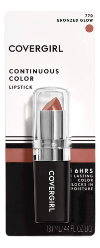 Batom Covergirl Continuous Color, 770 Bronzed Glow, 0,13 onças (a embalagem pode variar) — Fórmula rica em umidade — Vitaminas A e E — Horas de uso
