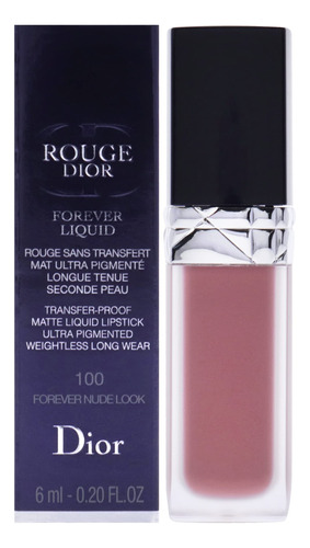 Christian Dior Rouge Dior Forever Liquid Matte — Batom feminino 100% Forever Nude Look de 0,2 onças — Cor radiante e de longa duração — Ajuda a melhorar a qualidade geral dos lábios, oferecendo elasticidade e maciez — A textura leve proporciona uma cor intensa e duradoura