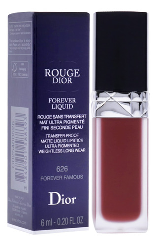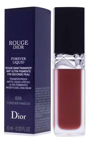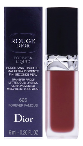 Christian Dior Rouge Dior Forever Liquid Matte — 626 batom feminino Forever Famous de 0,2 onças — Cor radiante e de longa duração — Ajuda a melhorar a qualidade geral dos lábios, oferecendo elasticidade e maciez — A textura leve proporciona uma cor intensa e duradoura