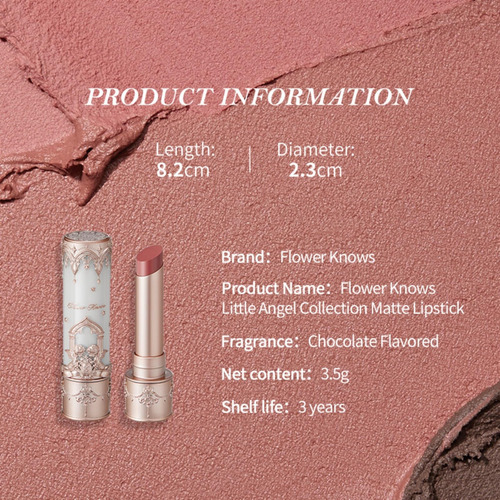 Experimente uma revolução no batom com o batom fosco Flower Knows Little Angel. Nossa fórmula exclusiva de Lip Mud desafia as texturas tradicionais, oferecendo uma sensação sedosa e duradoura. Obtenha um acabamento aveludado e cremoso com facilidade, sem se preocupar em secar ou borrar. Nosso Lip Mud fornece uma fórmula macia e altamente pigmentada que desliza facilmente sobre seus lábios, garantindo uma aparência perfeita e perfeita. Os ingredientes hidratantes, incluindo hialuronato de sódio e vitamina E, mantêm seus lábios hidratados, macios e nutridos, evitando qualquer ressecamento associado aos batons foscos. Abrace a elegância do nosso design de inspiração gótica, com elementos como arcos pontiagudos, rosáceas e anjos dourados. Com três opções diferentes de design de frasco, do branco nude calcário aos tons quentes de rosa e tons frios de preto, nosso batom adiciona um toque de sofisticação à sua coleção de maquiagem. Escolha entre nossa linha de nove tons quentes, cuidadosamente selecionados para atender a vários tons e preferências de pele. Experimente o efeito fosco de longa duração e desfrute de horas de umidade com o batom fosco Flower Knows Little Angel. Faça uma declaração com nosso batom aveludado e cremoso e deixe seus lábios roubarem os holofotes. Adquira seu batom Little Angel Matte hoje mesmo! – Textura revolucionária de batom: descubra o batom fosco Little Angel, que apresenta uma fórmula inovadora de “lama” que hidrata e proporciona uma sensação cremosa de longa duração. Desfrute de um acabamento fosco perfeito sem manchas ou penas – Supermacio e ultra sedoso: nosso batom labial possui uma textura aveludada macia e altamente pigmentada que desliza suavemente para uma aparência perfeita. Diga adeus a sensação de granulação ou formação de grumos. Devido à sua consistência cremosa, aplique-o com moderação para obter os melhores resultados. Rico em ingredientes hidratantes: infundido com hidratantes nutritivos, nosso A fórmula mantém seus lábios hidratados e macios durante todo o uso. Experimente horas de hidratação e um efeito fosco duradouro — Capa de batom em estilo gótico: inspirada na “arquitetura gótica medieval”, nossa embalagem incorpora lindamente elementos como arcos pontiagudos, rosáceas e anjos dourados em seu design cilíndrico, embelezado com poeira estelar para uma aparência sonhadora — Ampla variedade de tons: disponível em 9 tons, cada um com um sutil chocolate perfume, projetado para embelezar diversos tons de pele. Do delicado damasco nude (C01) ao luxuoso chocolate amargo (C09), encontre o seu ideal sombra para elevar sua aparência com nosso protetor labial