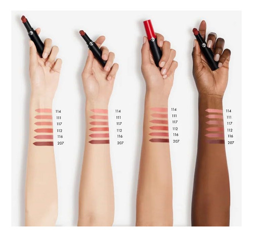 Batom fosco de longa duração Giorgio Armani Lip Power — 117 gracioso para mulheres — Batom de 0,11 onças — um novo batom fosco de longa duração com óleo de jojoba rico em pigmentos e azeite de oliva orgânico que nutre os lábios e oferece conforto durante todo o dia — Formulado com uma tecnologia exclusiva de deslizamento suave para aplicação macia e cremosa