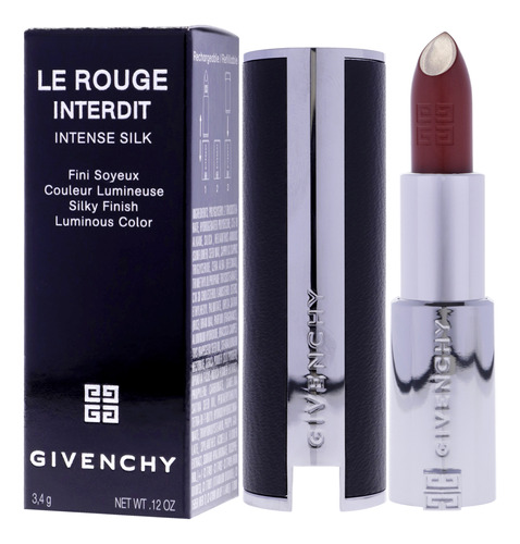 O icônico batom semi-fosco Givenchy foi reinventado em uma nova fórmula ecologicamente concebida* com uma textura surpreendentemente sensorial, envolta em um estojo de alta costura. Instalado em um estojo de couro recarregável, o Le Rouge Interdit Intense Silk é um acessório de moda atemporal e elegante. Sua textura moderna desliza facilmente sobre os lábios como seda, ao mesmo tempo em que oferece um acabamento luminoso e semi-fosco.