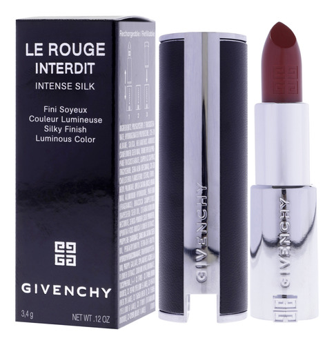 O icônico batom semi-fosco Givenchy foi reinventado em uma nova fórmula ecologicamente concebida* com uma textura surpreendentemente sensorial, envolta em um estojo de alta costura. Instalado em um estojo de couro recarregável, o Le Rouge Interdit Intense Silk é um acessório de moda atemporal e elegante. Sua textura moderna desliza facilmente sobre os lábios como seda, ao mesmo tempo em que oferece um acabamento luminoso e semi-fosco.