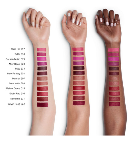 Batom Shiseido ModernMatte Powder, Nocturnal 521 — Batom fosco de cobertura total que não resseca — Cor leve e duradoura — Cobertura de 8 horas — BATOM FOSCO — Nossa fórmula que não seca oferece uma cor fosca de cobertura total que parece leve e fornece um acabamento macio como pó. Ele se transforma em um pó ultrafino enquanto pigmentos esféricos flutuam pelos lábios para desfocar as imperfeições. – INGREDIENTES PRINCIPAIS – Os pós de veludo conferem aos lábios um acabamento fosco e retocado que permanece firme por oito horas. Os pigmentos de iluminação óptica fornecem cores intensas e vibrantes. Ceras e óleos leves criam um véu de cor hidratante que se funde nos lábios. – COMO USAR – Deslize a bala angular pelos lábios para obter extrema precisão e controle sem delineador labial. – ESPECIALISTAS JAPONESES EM BELEZA – Fórmulas leves e de alta tecnologia transformam os lábios com cores intensas e texturas gráficas inspiradas na Tóquio moderna.