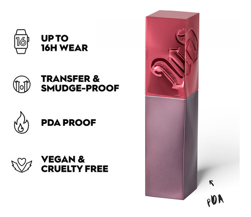 PDA VICE LIP BOND — BATOM LÍQUIDO DE ALTO BRILHO — Esse batom líquido de longa duração e altamente pigmentado pode ser usado confortavelmente por até 16 horas com um acabamento de brilho instantâneo, sem parecer pegajoso ou pegajoso! Os lábios ficarão hidratados com uma cobertura completa e uniforme. – Cor de um toque – Lip Bond dá uma cor ao toque com conforto que compromete. Cada tonalidade oferece brilho instantâneo, sem descamação ou rachaduras. Vegano e livre de crueldade, este batom à prova de manchas, à prova de transferência e resistente à água pode resistir a qualquer vício! – BATOM BRILHANTE QUE PERMANECE — Se você está procurando um tom vermelho intenso (como Unbreakable), um tom nude (Text 'Em) ou um lábio roxo ousado (sem restrições), o novo Vice Lip Bond é o melhor batom suave e sem bagunça para saturação intensa de cores – COMO APLICAR – Ative a cor brilhante do batom com um shake de 5 segundos. Aplique e deixe secar quanto mais tempo endurecer, melhor ficará!