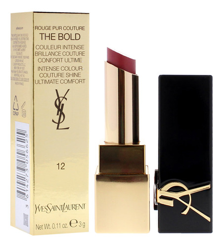 Batom Yves Saint Laurent Rouge Pur Couture The Bold – 12 Nu Incongru para mulheres – Batom de 0,11 oz – Um