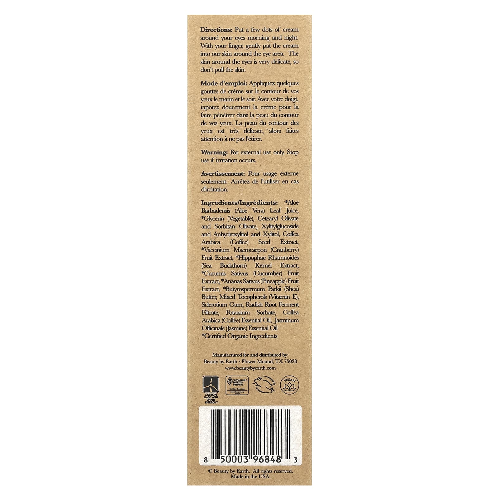 Este creme para a área dos olhos é elaborado com óleos orgânicos, manteigas e extratos ricos em antioxidantes de abacaxi, cranberry, espinheiro marítimo, pepino e, claro, grão de café. Adicionamos essa fórmula rica em nutrientes a uma base hidratante de babosa para iluminar e despertar seus olhos.