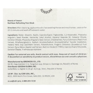Beauty of Joseon Máscara Refrescante de Feijão Vermelho para a Beleza dos Poros 140 ml (473 fl oz) – Beauty of Joseon Beleza Máscaras Faciais de Beleza Máscaras Faciais Enxaguáveis Máscaras Faciais K-Beauty.