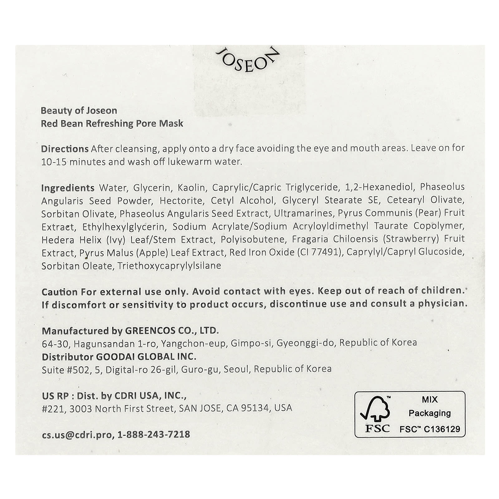 Beauty of Joseon Máscara Refrescante de Feijão Vermelho para a Beleza dos Poros 140 ml (473 fl oz)
