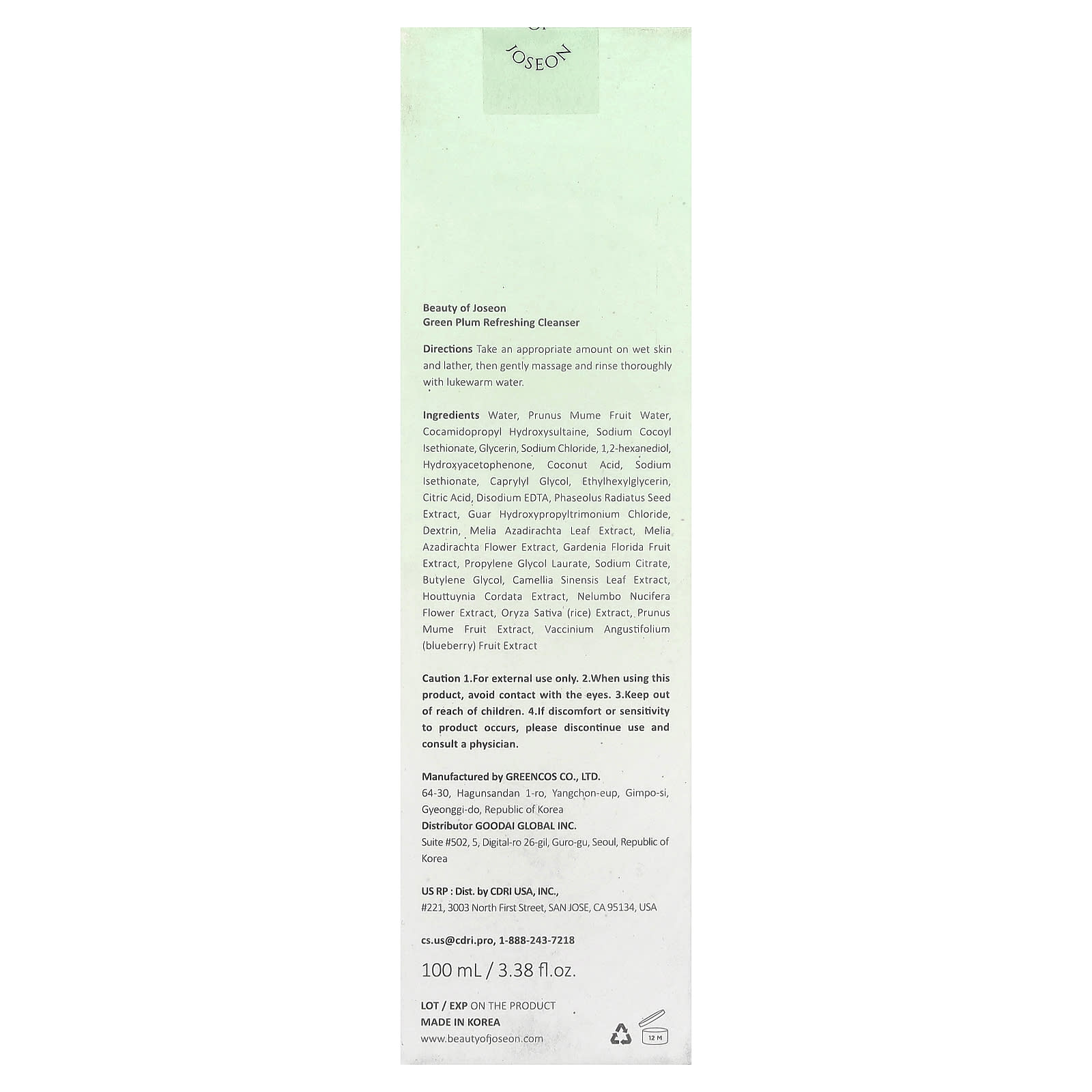 Beauty of Joseon Produto de Limpeza Refrescante com Ameixa Verde 100 ml (338 fl oz) – Beauty of Joseon Beleza Limpeza Facial Sabonetes Faciais Limpeza facial K-Beauty.