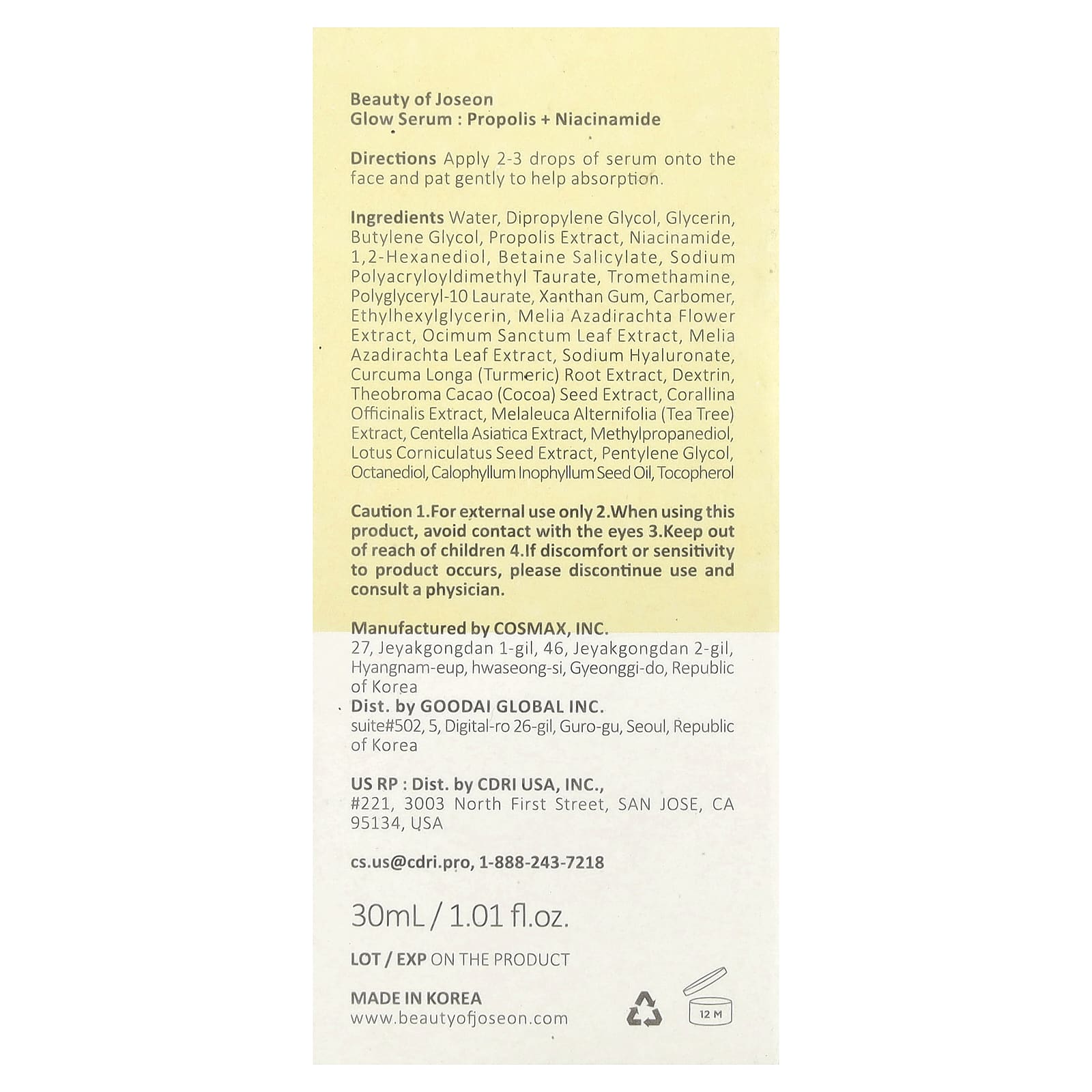 Beauty of Joseon Sérum Iluminador Própolis + Nicotinamida 30 ml (101 fl oz) – Beauty of Joseon Beleza Tratamentos e Séruns Séruns Faciais Beleza por Ingrediente Cuidado para a pele com própolis.