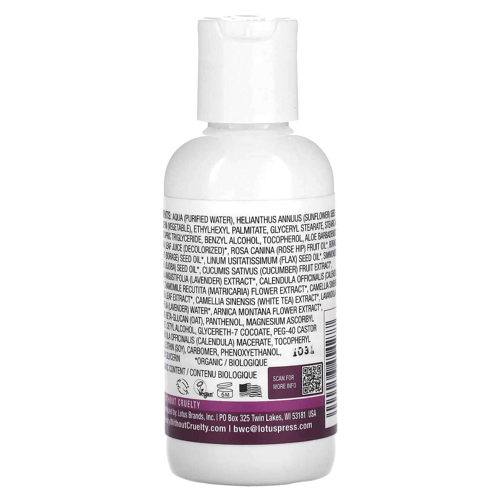 Água purificada, suco de folha de aloe barbadensis (aloe vera) *, óleo de Helianthus annuus (girassol) *, glicerina, palmitato de octilo, estearato de glicerilo, triglicerídeos capricílicos capráticos, ácido esteárico, alantoína, aglomerado de glucano, extracto de pantenol, cucumis sativus (pepino) *, extracto de lavandula angustifolia (lavanda) *, lavandula angustifolia (lavanda) hidrosol *, extrato de calendula officinalis (calênula) *, extracto de antimia nobilis (camomila) *, fosfato de ascorbilo de magnésio, álcool cetílico, cocoato de glicer-7, castor PEG-40 Misturador de óleo, calendula officinalis (calendula), extrato de camélia sinensis (chá verde), extrato de camélia sinensis (chá branco), acetato de tocoferol, palmitato de retinil, óleo de rosa canina (rosa), borago officinalis (borragem) óleo *, linum usitatissimum (linho) óleo de semente *, óleo de simmondsia chinensis (jojoba) *, lecitina de soja, carbomer, fenoxietanol, etil hexil glicerina, álcool benzílico.