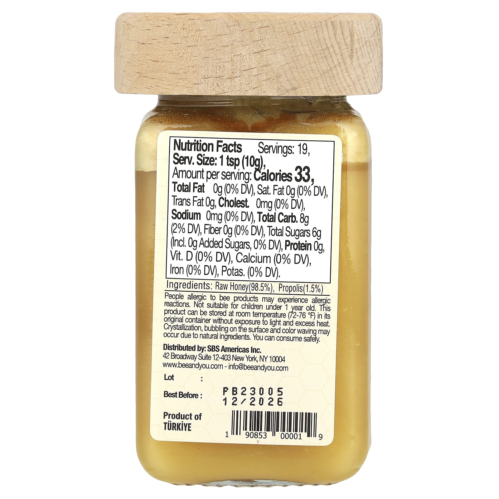 Pessoas alérgicas a produtos apícolas podem apresentar reações alérgicas. Não adequado para crianças menores de 1 ano de idade. Este produto pode ser armazenado em temperatura ambiente (72-76 ºF) em seu recipiente original, sem exposição à luz e ao excesso de calor. Pode ocorrer cristalização, borbulhamento na superfície e ondulação de cor devido aos ingredientes naturais. Você pode consumir com segurança.