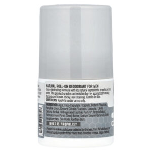 Fórmula eliminadora de odores com seus ingredientes naturais: própolis e óxido de zinco. Este produto cria uma barreira invisível contra bactérias causadoras de odor, não é pegajoso nem mancha. Suave para a pele.