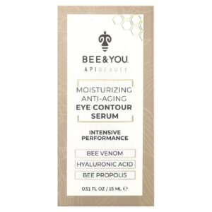 Enquanto hidrata a pele com extratos de plantas naturais, mel puro e própolis de abelha, o Sérum para Contorno dos Olhos Antienvelhecimento da Bee&You Apibeauty nutre e ilumina a pele naturalmente. Com veneno de abelha e ácido hialurônico, o Sérum Hidratante Antienvelhecimento para Contorno dos Olhos da Bee&You ajuda a reduzir o aparecimento de linhas de expressão e rugas quando usados regularmente.