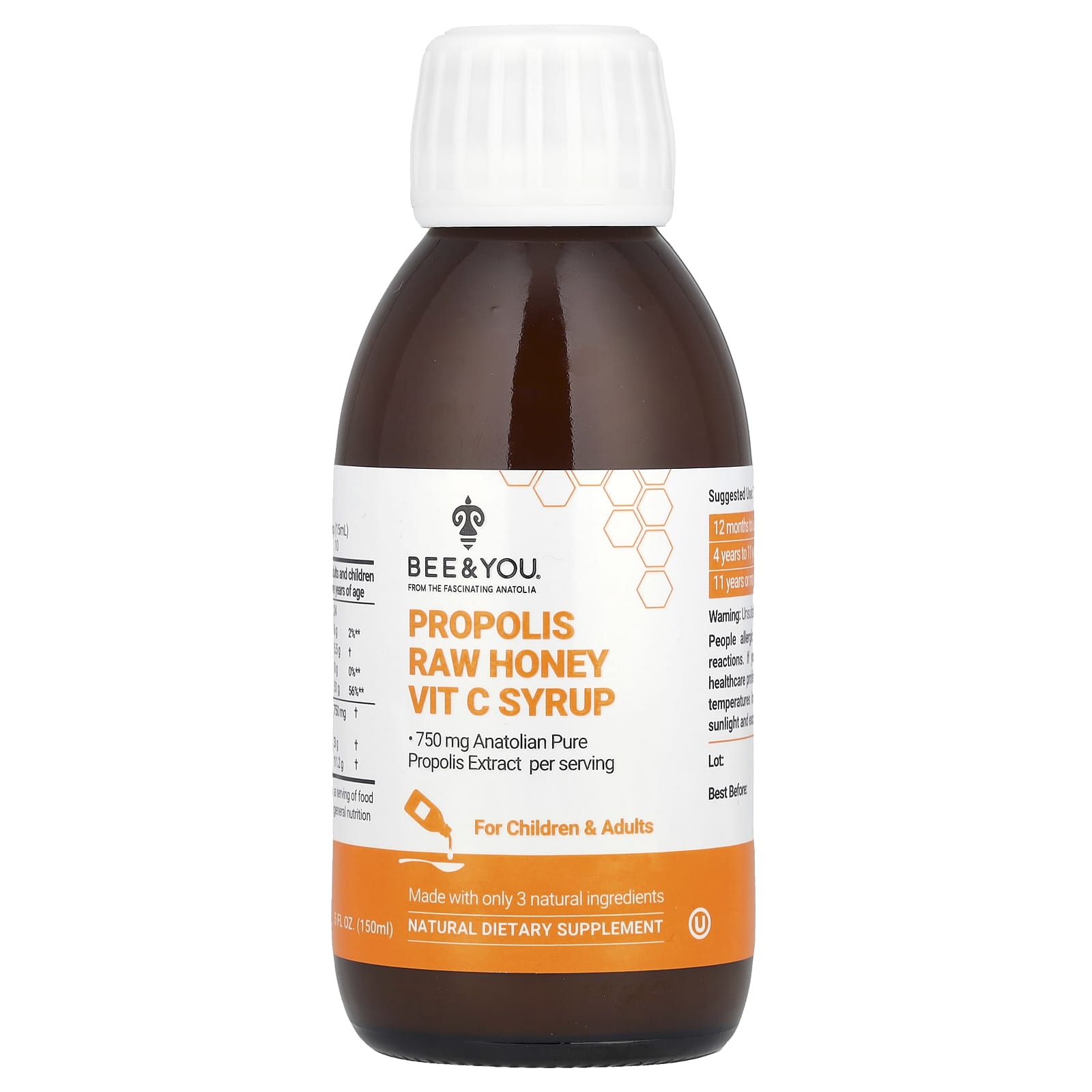Bee & You Xarope de Própolis Cru e Mel com Vitamina C 150 ml (5 fl oz) – BEE&YOU Suplementos Produtos Derivados de Abelhas Própolis Vitamins Vitamina C.