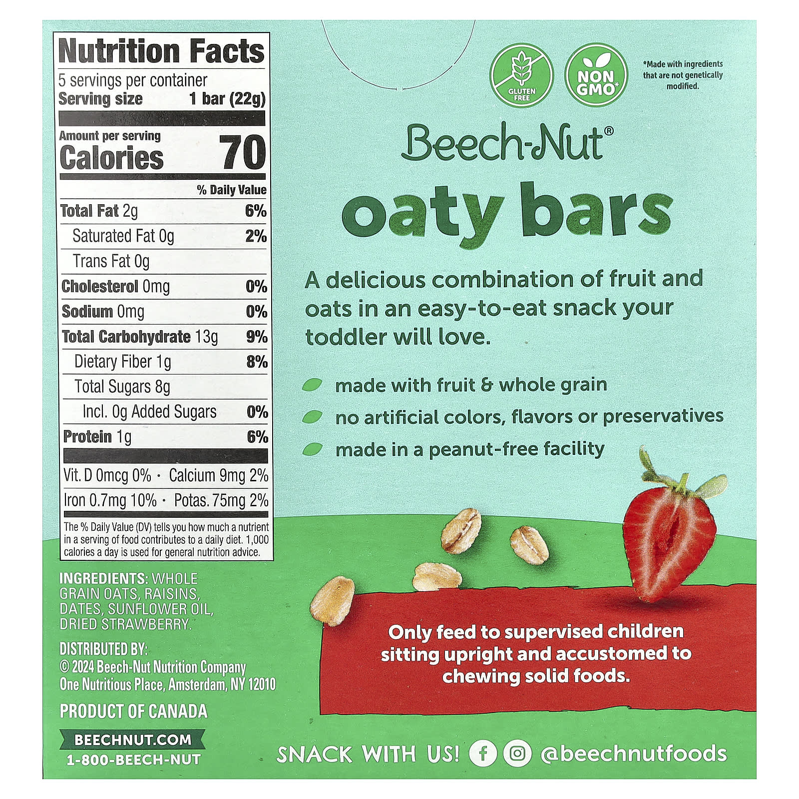 Beech-Nut Barras de Aveia Mais de 12 Meses Morango 5 Barras 22 g (078 oz) Cada – Beech-Nut Bebês e Crianças Alimentação Lanches para Bebês e Crianças.