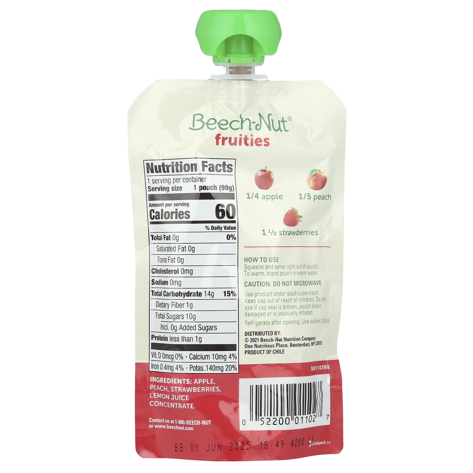 Beech-Nut Fruidades Mais de 6 Meses Maçã Pêssego e Morangos 12 Sacos 99 g (35 oz) Cada – Beech-Nut Bebês e Crianças Alimentação Saquinhos, Purês e Refeições.
