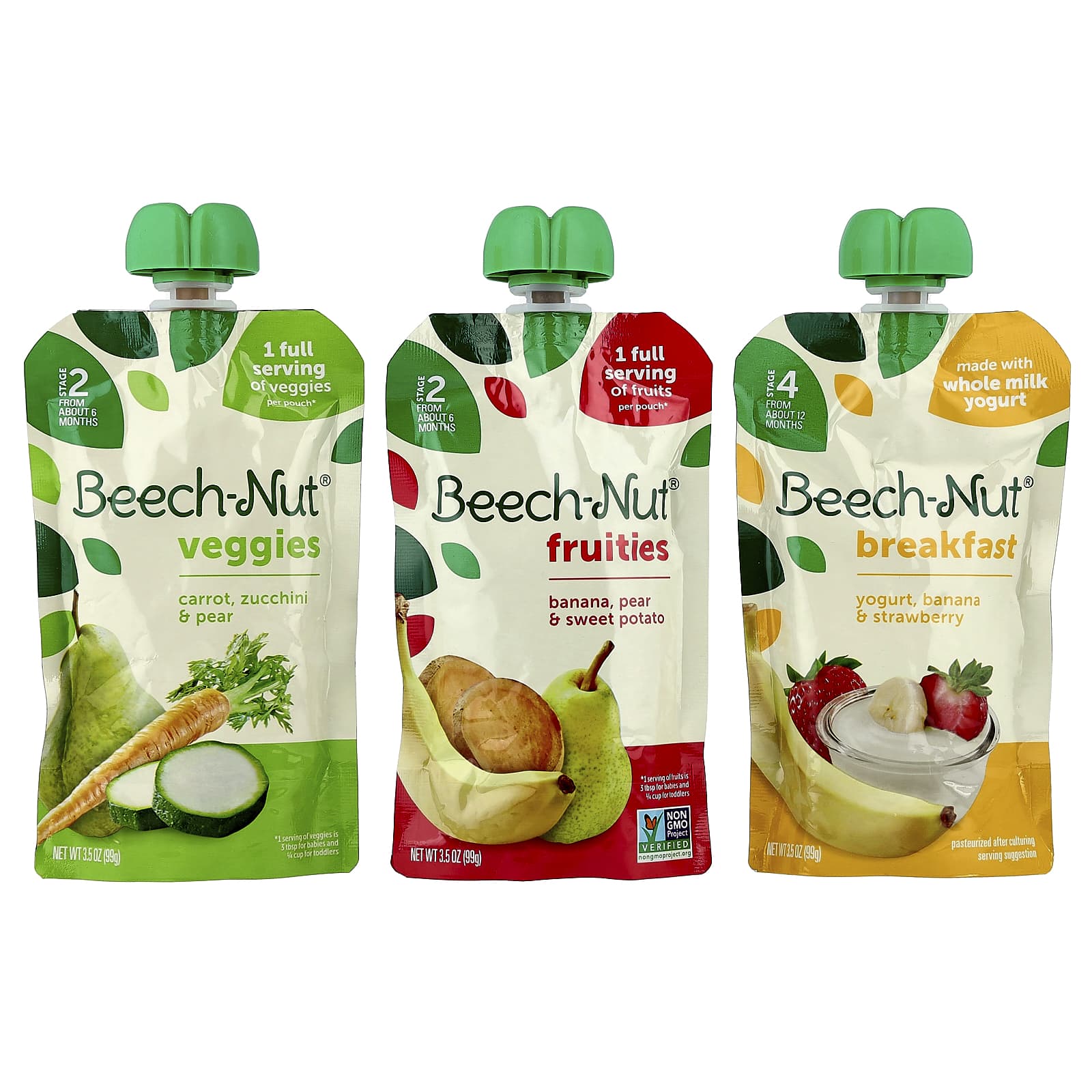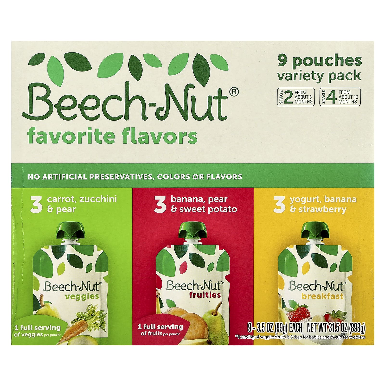 Beech-Nut Pacote de Sabores Favoritos 6+ Meses e 12+ Meses 9 Sacos 99 g (35 oz) Cada – Beech-Nut Bebês e Crianças Alimentação Saquinhos, Purês e Refeições.