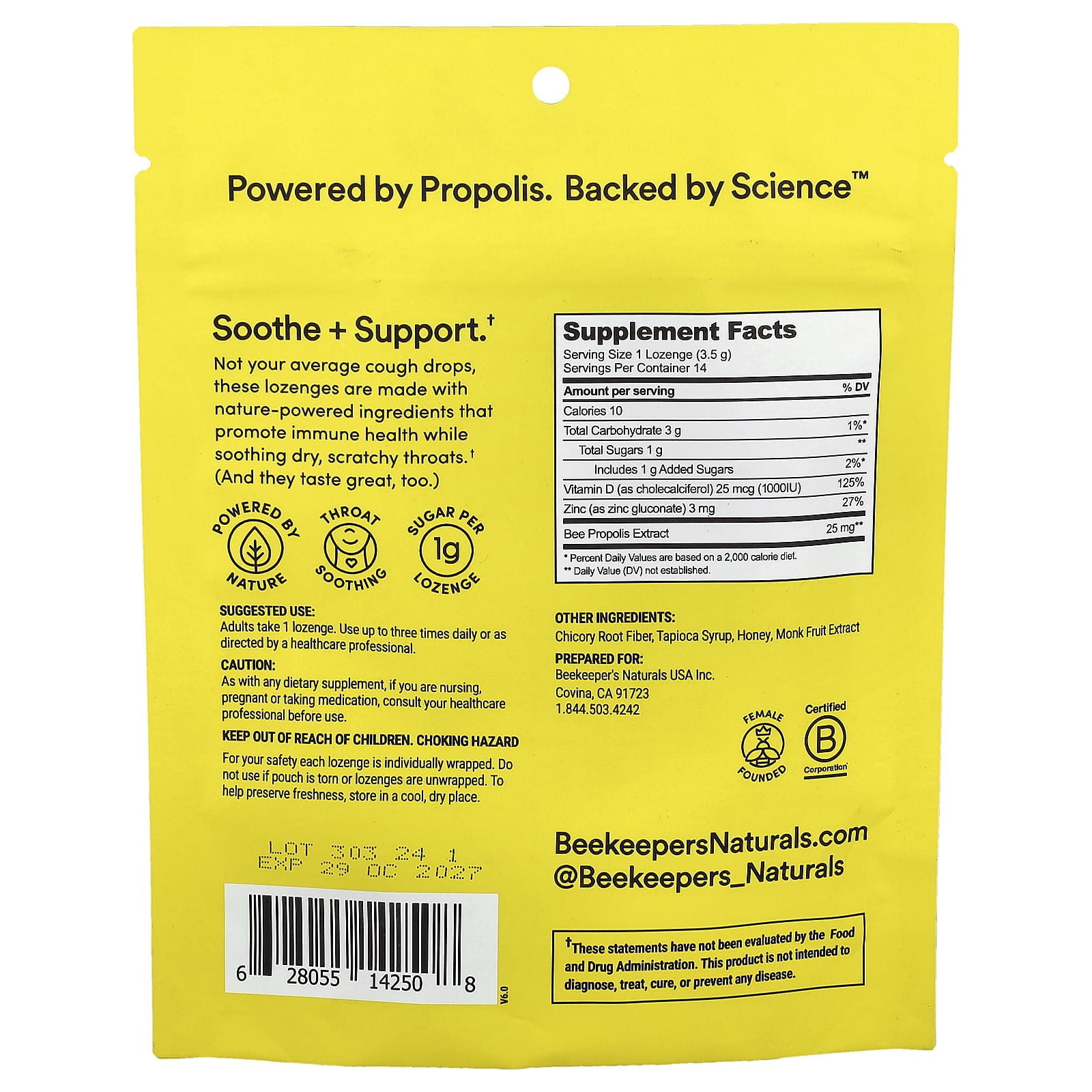 Beekeepers Naturals Pastilhas Calmantes de Própolis Mel 14 Pastilhas 50 g (176 oz) – Beekeeper’s Naturals Banho e Cuidados Pessoais Armário do Banheiro Pastilhas para garganta inflamada e tosse.