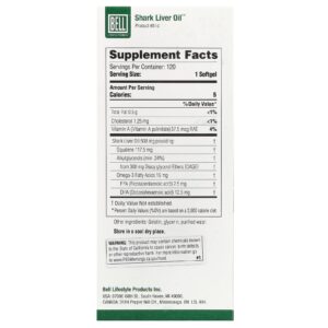 Bell Lifestyle Óleo de Fígado de Tubarão 120 Cápsulas Softgel – Bell Lifestyle Suplementos Ômegas e Óleos de Peixe (EPA/DHA) Ômega 3 e Óleo de Peixe.