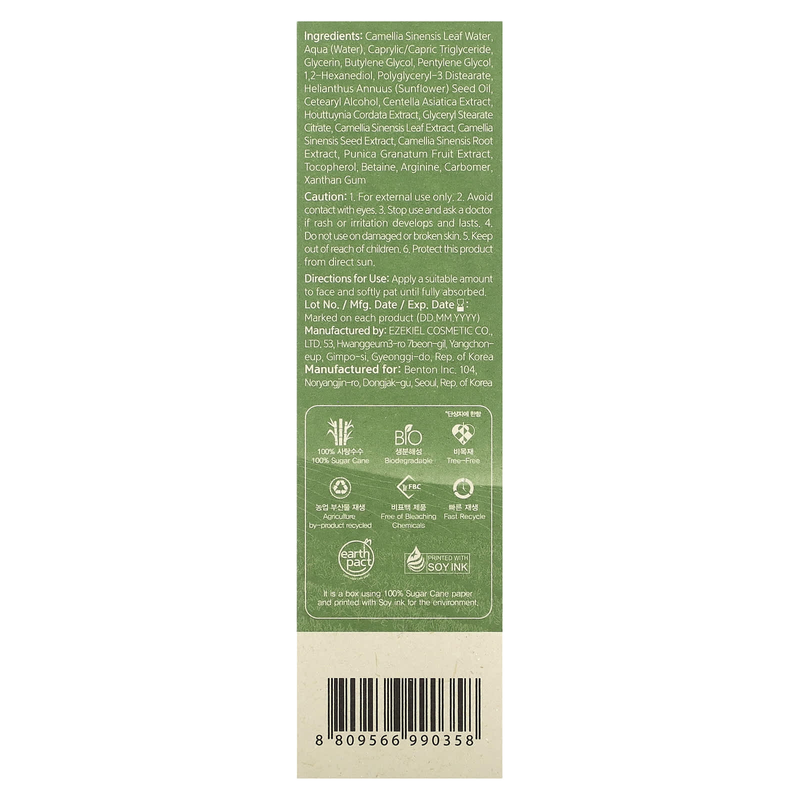 Benton Loção de Chá Verde Profundo 120 ml (405 fl oz) – Benton Beleza Beleza por Ingrediente Extrato de chá verde, beleza Hidratantes Faciais e Cremes Hidratantes e Cremes K-Beauty.