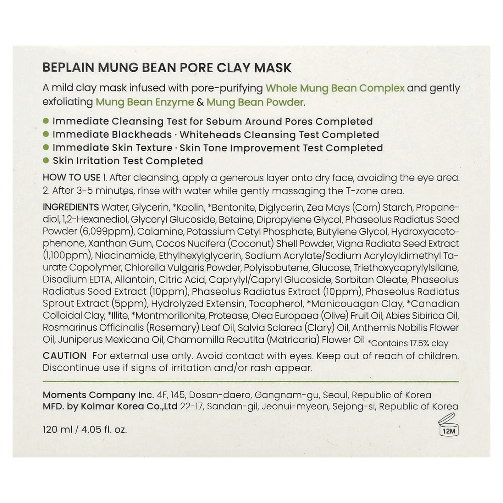 Beplain Feijão Mung Máscara de Beleza de Argila de Poros 120 ml (405 fl oz) – Beplain Beleza Máscaras Faciais de Beleza Máscaras Faciais Enxaguáveis Máscaras Faciais K-Beauty.