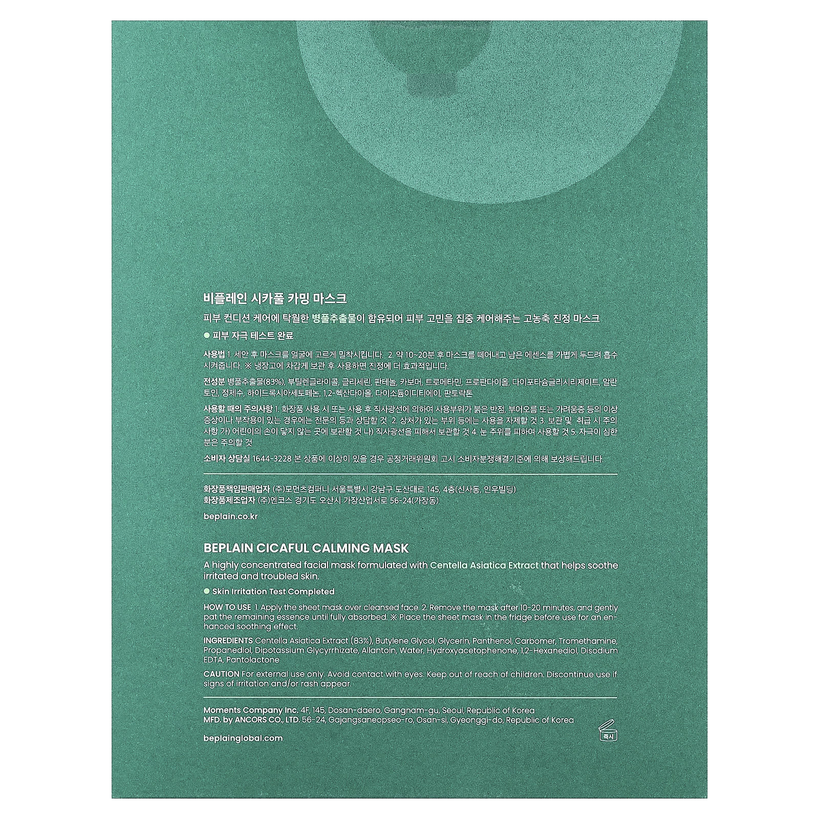 Beplain Máscara Cicaful Calmante de Beleza 10 Folhas 27 g (095 oz) Cada – Beplain Beleza Máscaras Faciais de Beleza Máscaras Faciais Máscaras em folha K-Beauty.