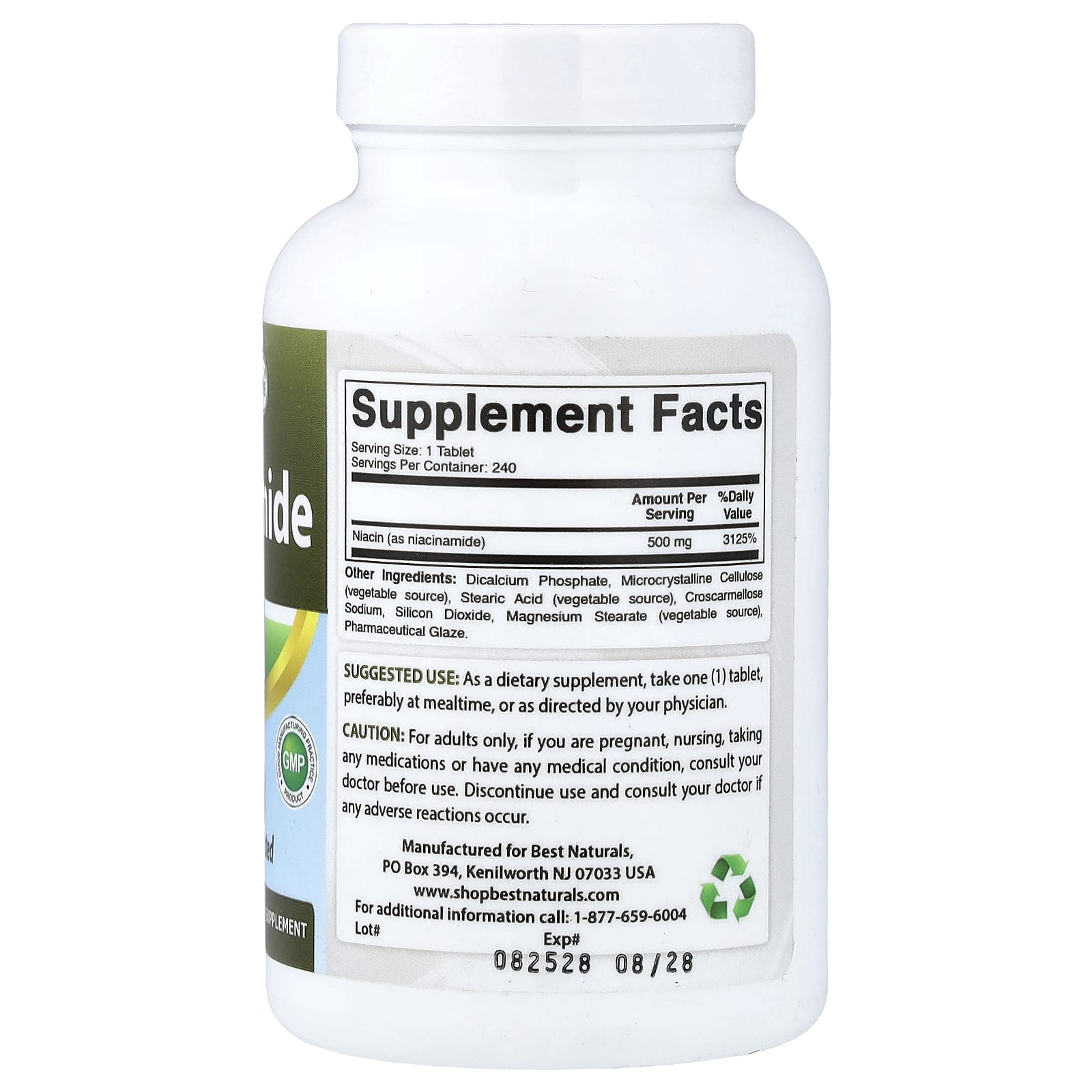 Best Naturals Niacinamida 500 mg 240 comprimidos – Best Naturals Suplementos Vitaminas Vitamina B Vitamina B3 (Niacina).