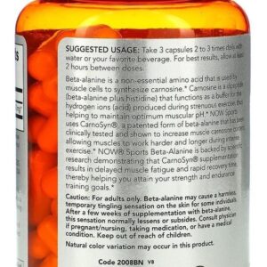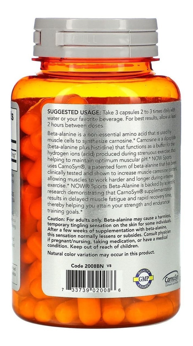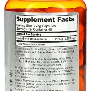 A Beta-Alanina é um aminoácido não essencial utilizado pelas células musculares para sintetizar carnosina. A carnosina é um dipeptídeo (beta-alanina + histidina) que funciona como um tampão para os íons de hidrogênio (ácidos) produzidos durante exercícios extenuantes, ajudando a manter o pH ideal dos músculos. A NOW Sports utiliza CarnoSyn, uma forma patenteada de beta-alanina que foi clinicamente testada e comprovada em aumentar a carnosina nos músculos, permitindo que eles funcionem melhor e por mais tempo durante exercícios intensos. A suplementação com CarnoSyn resulta em recuperação rápida e atraso da fadiga muscular, auxiliando na conquista de objetivos em treinos de força e resistência.